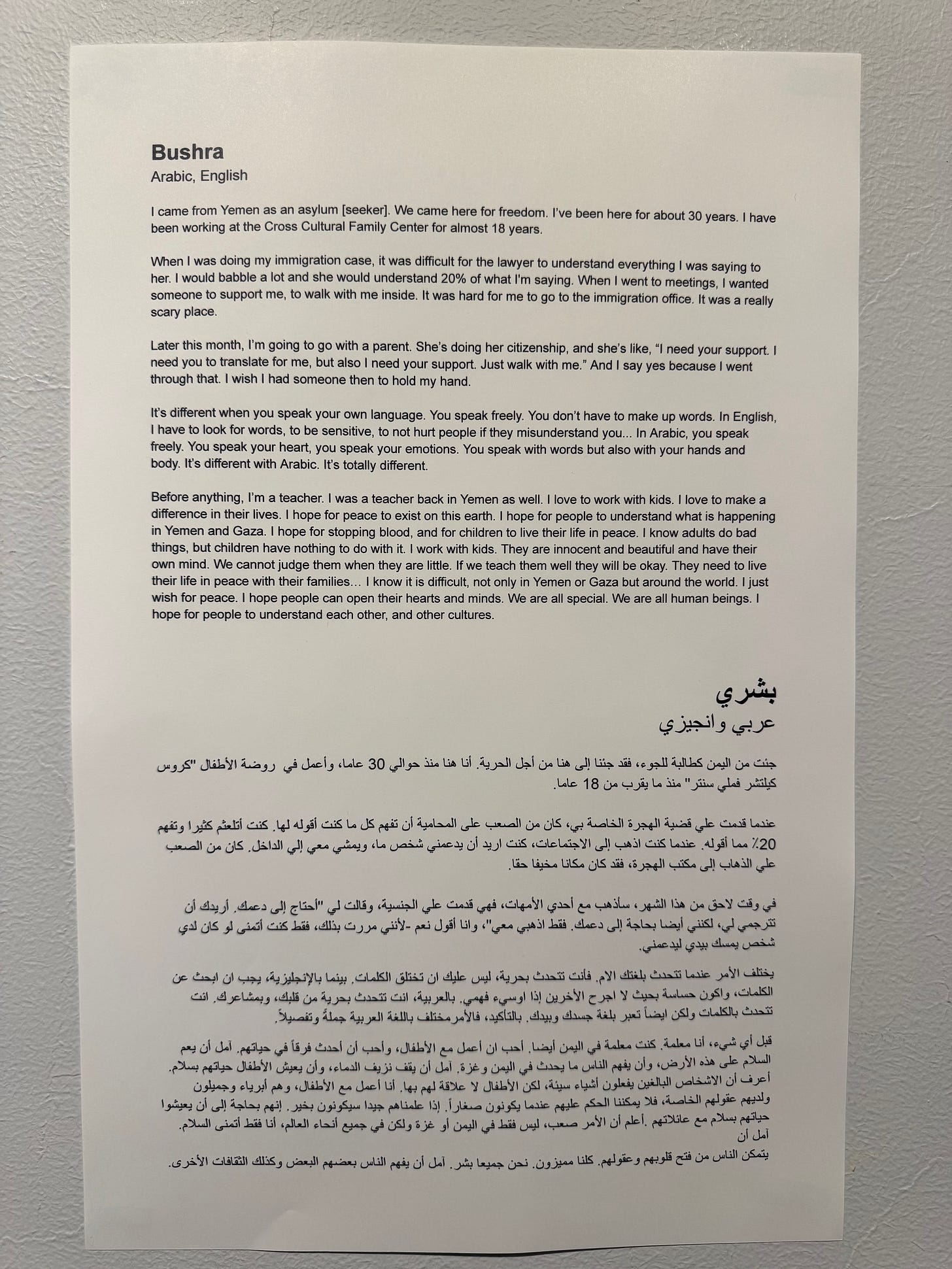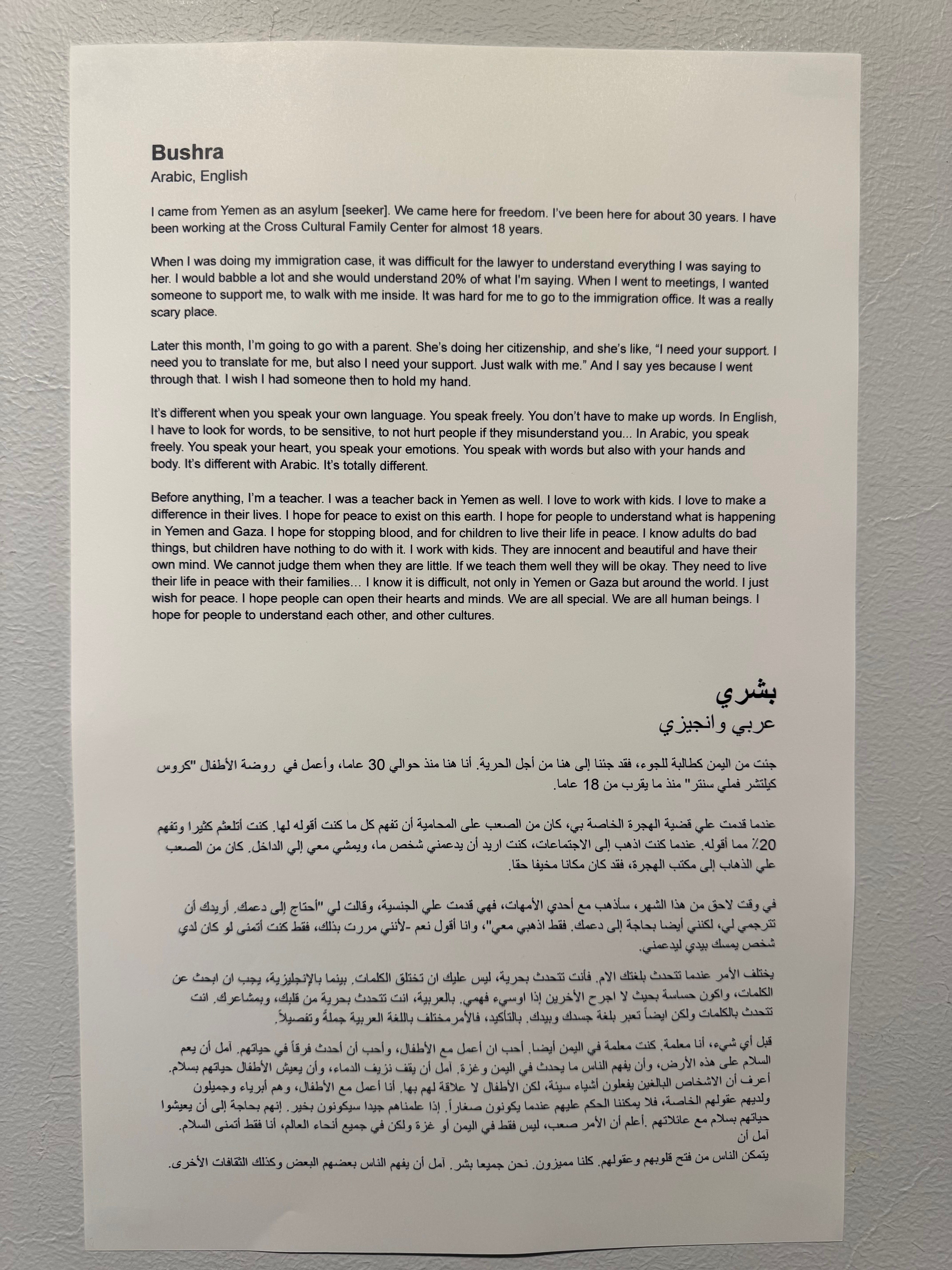 I recognized my former student from Oakland International High School before I read the wall text next to her portrait. And I remembered how she used to look at me sometimes, a mixture of sad and sorry. I was sorry too, for the gaps between us that the words we had could not bridge.