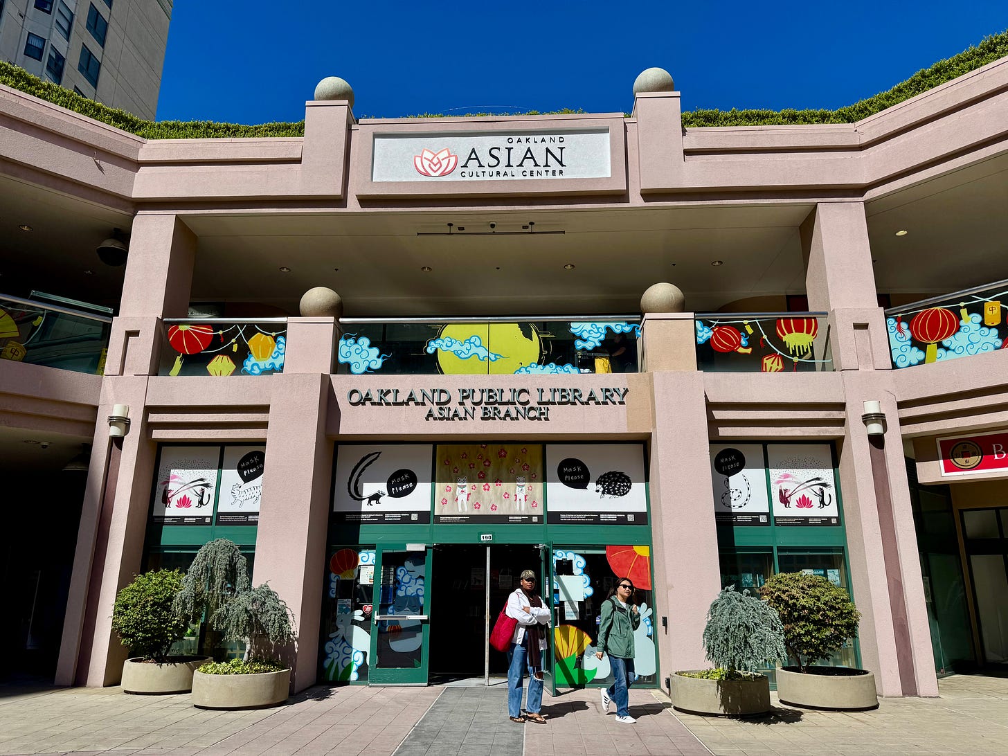 You might recognize this plaza because its garage is one of the best places to park in Chinatown. Go up to the second floor, through the main doors of the Oakland Asian Cultural Center, and to the hallway on your right. There you’ll find several displays of photographs – first the smaller ones, then larger portraits as you continue through another doorway, down the hall.